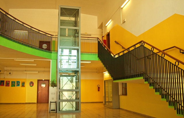 All'ingresso, un vasto atrio ospita spesso attività musicali e saggi a cui partecipano tutte le classi.