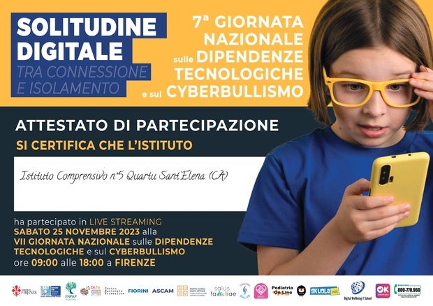 Attestato di partecipazione 7° Giornata Nazionale sulle Dipendenze Tecnologiche e sul Cyberbullismo.