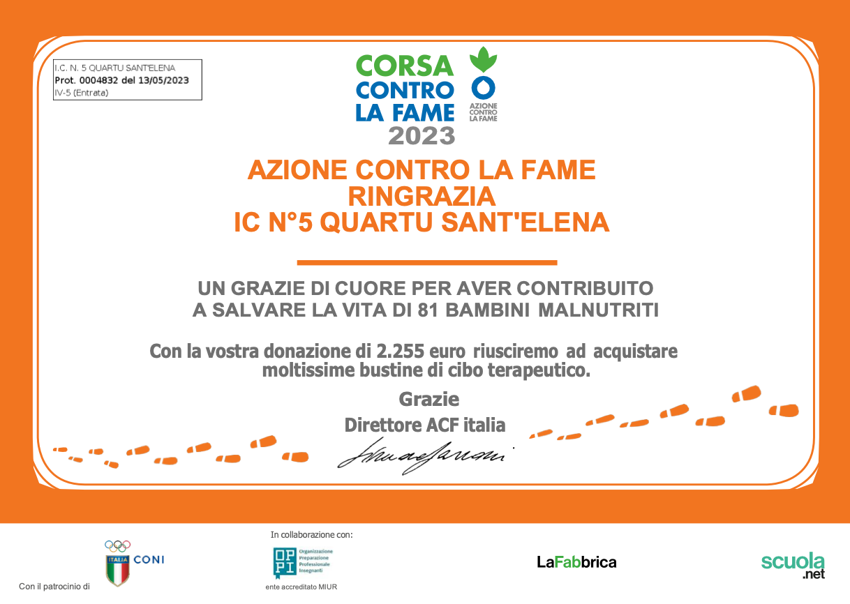 Anche quest'anno il nostro Istituto ha partecipato all'iniziativa "Corsa contro la fame".