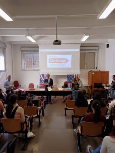 Nella sala riunioni del Liceo lunedì 20 novembre si è tenuta la cerimonia di consegna dell’attestato di Certificazione Linguistica Internazionale Cambridge Assessment English agli studenti che lo hanno conseguito al termine del corso PON di Potenziamento linguistico, tenuto dalla prof.ssa Liana De Mite nell’anno scolastico 2022/23; sono intervenuti Andrew Storey, in qualità di Exam supervisor e Andrea Canepa, in qualità di responsabile settore scuole dell’ Anglo American Academy, ente riconosciuto per la Certificazione.