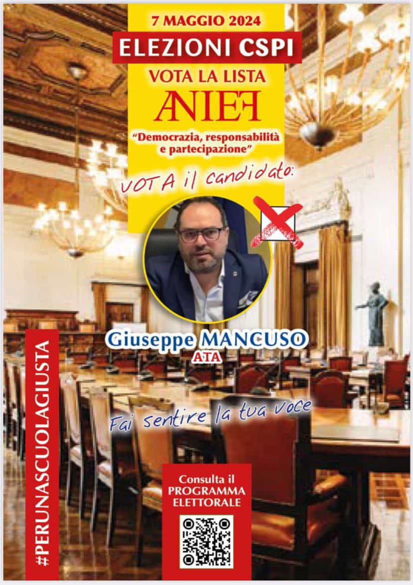 [Sindacato Nazionale FederATA] Presentazione della candidatura al CSPI del Presidente Nazionale di Feder.ATA Giuseppe Mancuso nelle liste di ANIEF