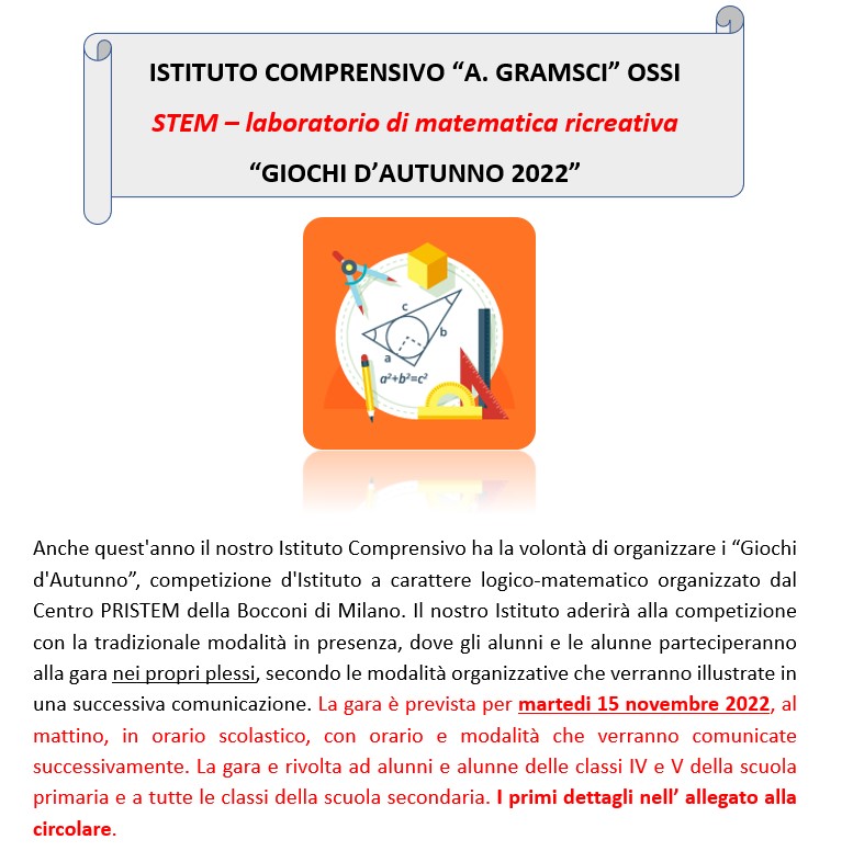 Circ. n.26 - STEM - Giochi Matematici d'Autunno 2022