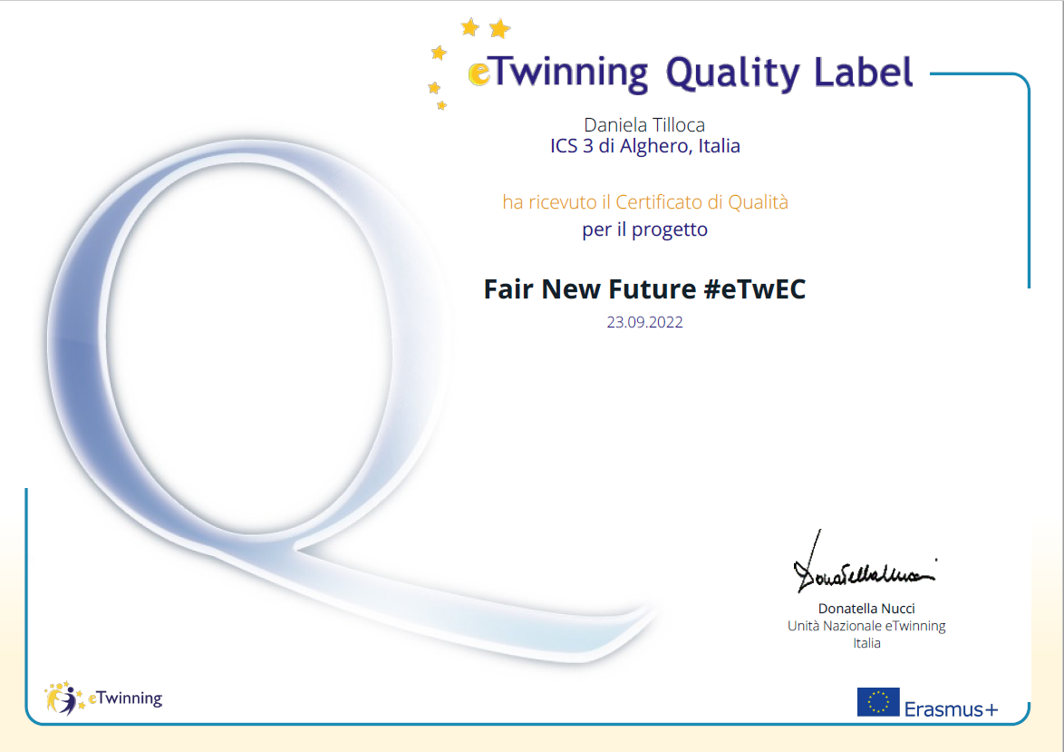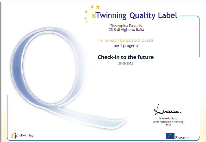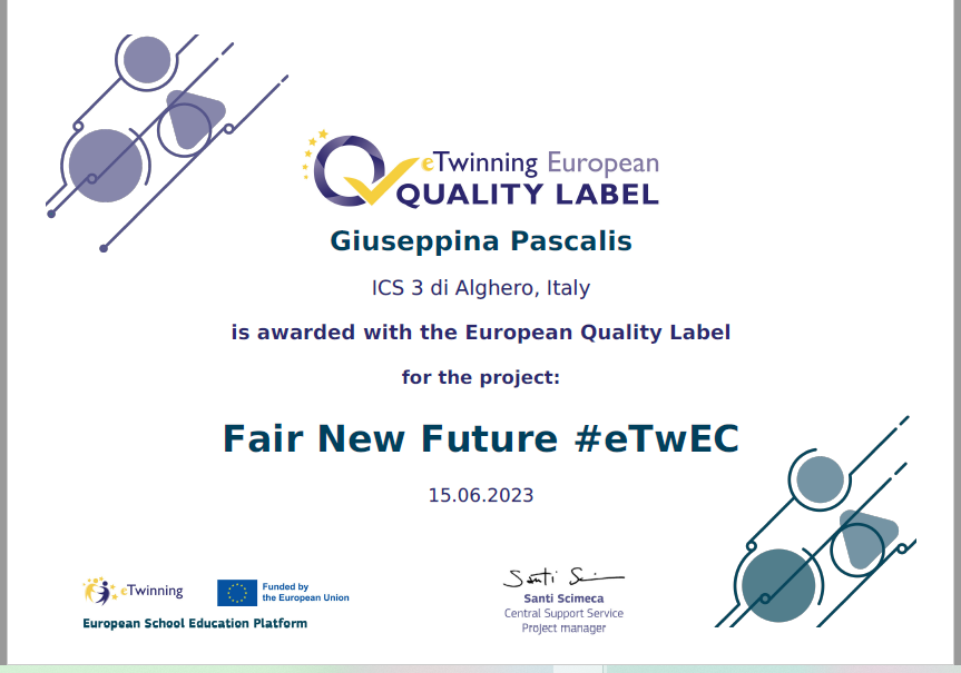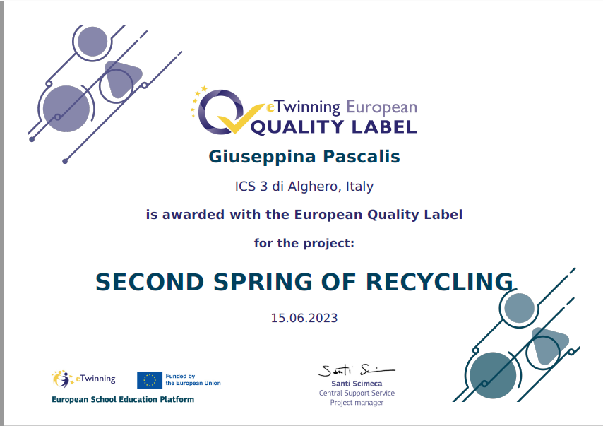 Ecco invece le foto dei certificati e del logo del progetto realizzato dagli studenti dell'IC 3 di Alghero